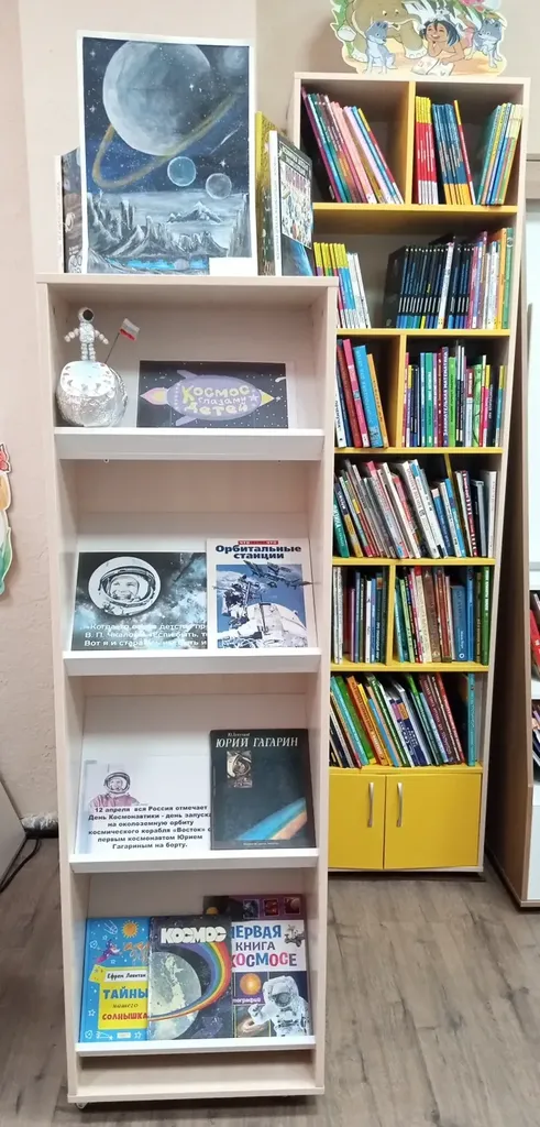Подготовлена и оформлена книжная выставка «Космос глазами детей:смотрим вверх».Неделя Космоса в России проходит с 6 по 12 апреля 2026 года.Это первая в истории страны акция,которая была учреждена Указом Президента РФ В.В.Путина №995 от 29 декабря 2025 года.С 2026 года Неделя Космоса будет проводиться ежегодно в эти даты.Специалисты библиотеки провели беседу на тему Космоса.Акция приурочена к 65-летию первого полёта человека в Космос.В беседе, пользователям,рассказали,что Космос это бесконечное пространство,которое включает звёзды,планеты,галактики,чёрные дыры,туманности и другие небесные объекты.Изучение космоса позволяет человеку расширять знания о Вселенной. У недели Космоса есть слоган- «Будущее за теми,кто смотрит вверх»